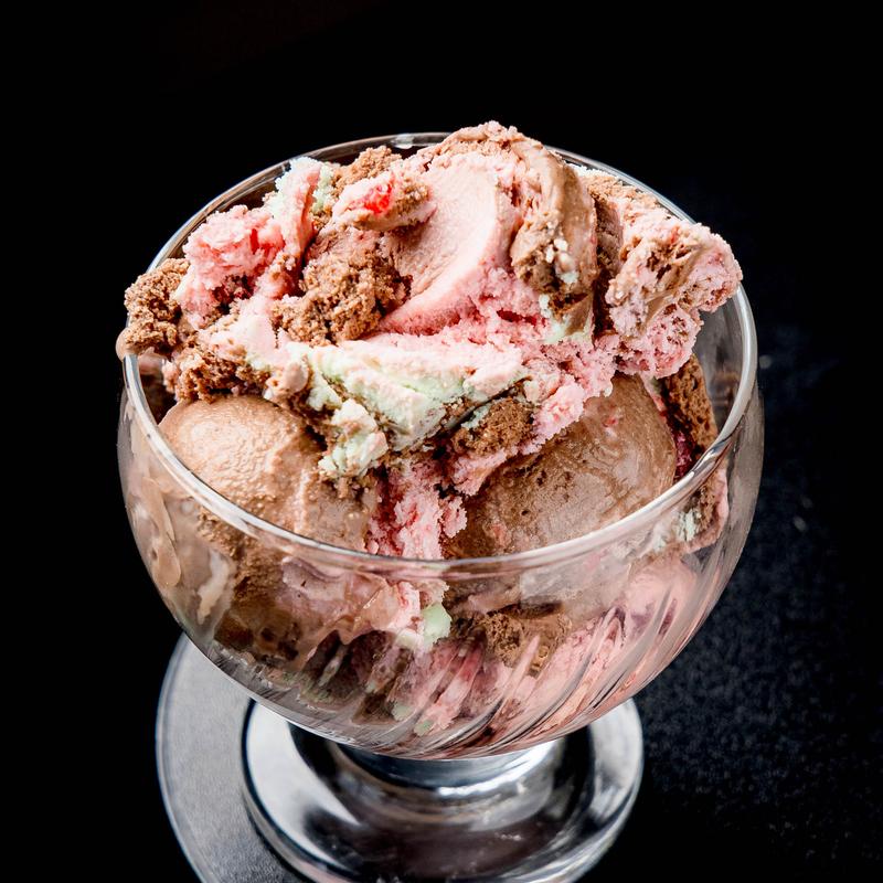 Italian ice cream. Cherry, chocolate, and pistachio