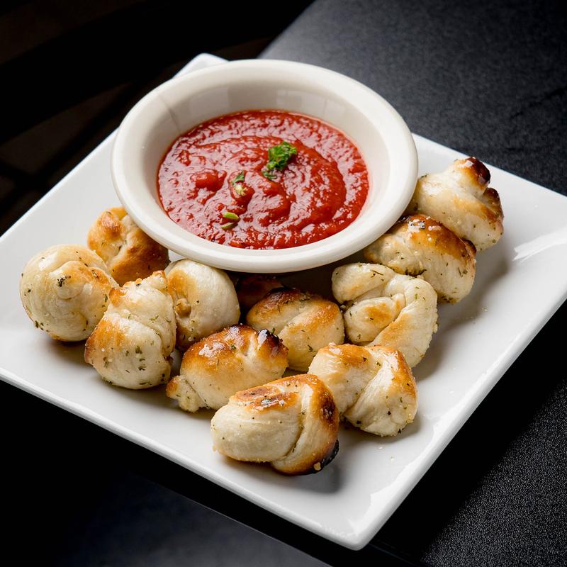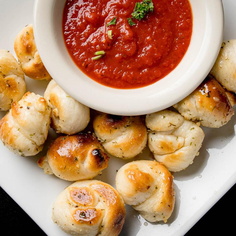 Six garlic knots, two ravioli